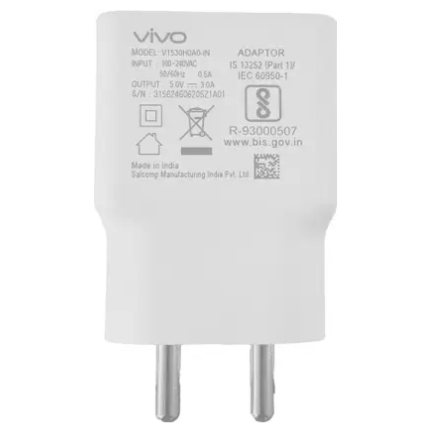 | vivo 15W Adapter White Input : 100-240VAC 50/60Hz, 0.5A |